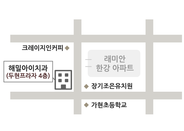 주소 : 김포시 김포한강2로 104번길 62,두현프라자 4층 해밀아이치과