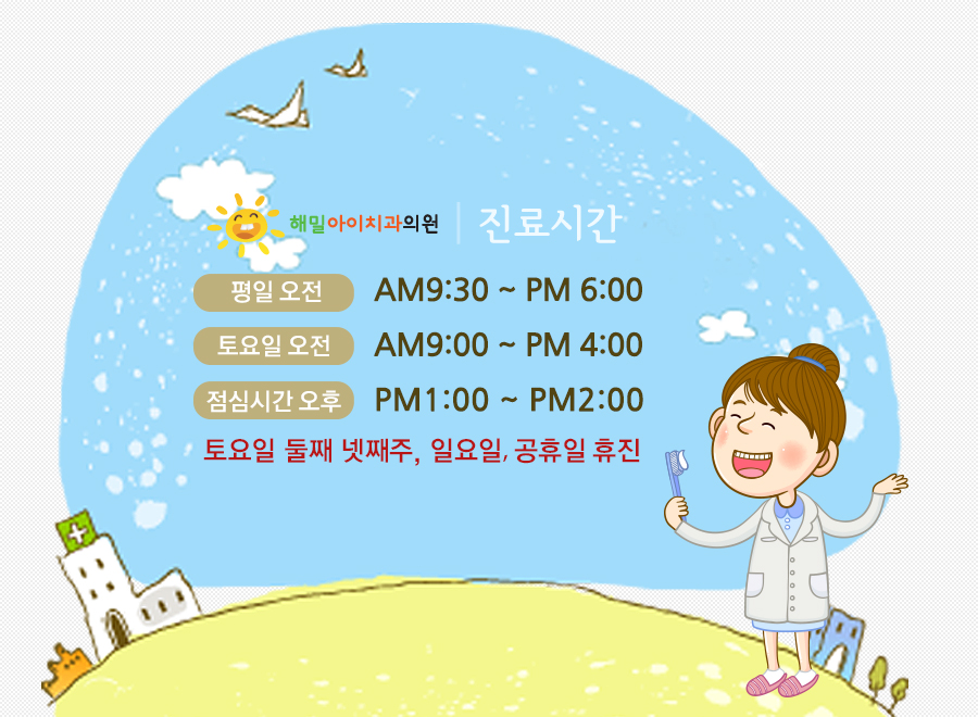 유치가 하나둘씩 빠지고 영구치가 나기 시작합니다. 영구치가 모두 있는지, 잘 맹출하고 있는지 방사선 사진(파노라마)를 찍어 보시면 좋아요. 종종 과잉치나 결손치가 발견되기도 해요. 이제는 스스로 칫솔질을 할 때입니다. 치과에 정기적으로 내원하셔서 검진과 불소도포를 하시는 것이 좋습니다. 이 때 식이 상담과 칫솔질 교육이 필요해요.